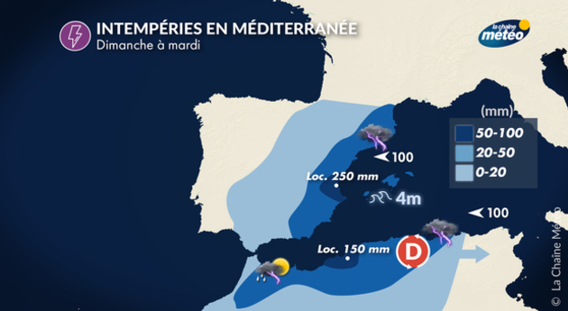 Le pourcentage indique la possibilité d'avoir le temps. La météo en espagne en temps réel sur l'ensemble du territoire.